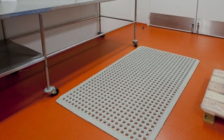 由高分子合成耐油橡胶制造,具有抗油、抗腐蚀、抗菌的效果。表面凸起设计加大了与鞋底的摩擦力,有效防止滑倒危险;底部吸盘设计不仅提高了地垫的高度,配合整体镂空的小孔还能加强排水性,使表面保持干爽。